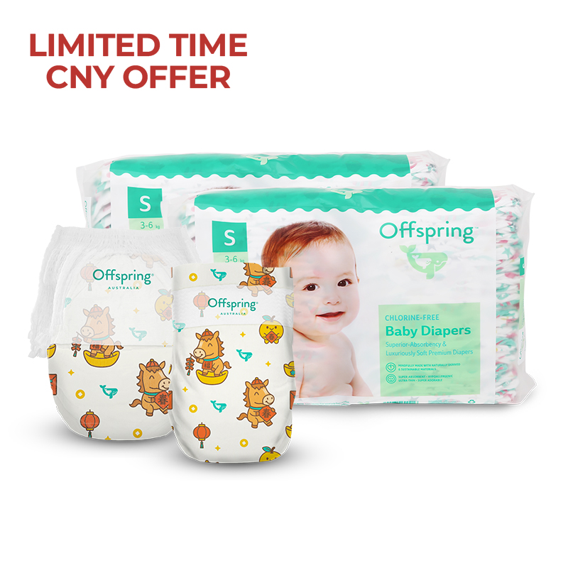 – 2 packs of luxuriously soft and super absorbent diapers (CNY LIMITED EDITION)